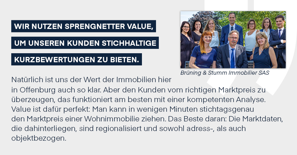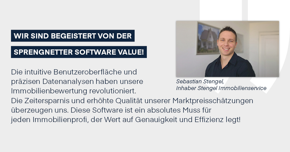 Erstellen Sie Value-Bewertungen jetzt direkt in der Adressliste im Schnellverfahren! Unser neuer Schritt-für-Schritt-Prozess führt Sie in wenigen Schritten zur fertigen Bewertung – ohne Softwareschulung. Die Bewertung können Sie jederzeit in der Benutzeroberfläche von SprengnetterONE nachbearbeiten. Als Bonus: Nutzen Sie die eingegebenen Daten direkt für die Erstellung von Reports oder Maps-Bewertungen durch die automatische Datenübernahme.